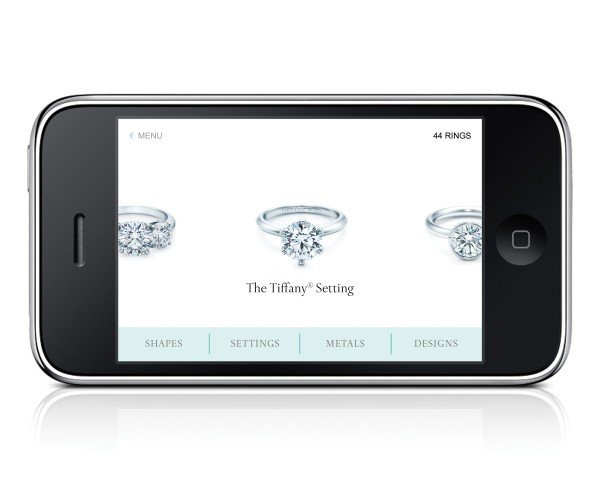Not to be outdone on the technological front, Tiffany & Co. has recently released an application for iPhone and iPad, available for free download at iTunes. The app allows users to search for Tiffany rings, based on shape, setting, metal or design.