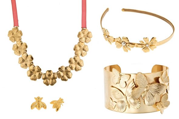 The Spring 2011 Kaleidoscopic Collection features a perfectly playful range of 14k gold goodies — flower earrings, shell necklace, bee studs, lady bug cuff and more. “This season, I wanted to bring in color and fun into my collection — pieces that counteract any ‘darkness’ that the wearer encounters with an upbeat and lighthearted style,” says designer Emily Elizabeth Kolins.