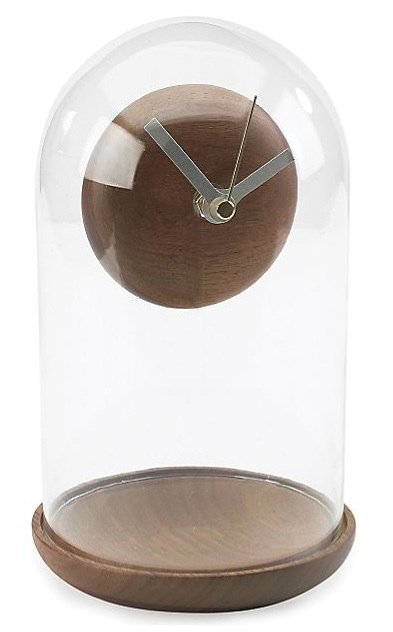 Covered with a dome-shaped glass case, designer Alan Wisniewski has created a desk clock that ‘magically’ floats in space. Hovering with ease in its shield, checking the time has never been more fascinating. The base and face are made of hardy walnut, giving it a simple yet mythical touch. Best of all, this model is only 8½ by 4¾ inches – so you won’t need to clear away too much space!