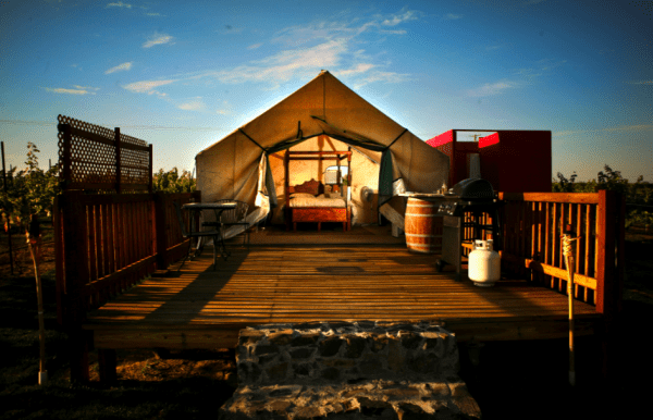 Glamping offers a special way to relax in Washington wine country. You can spend the day touring the wineries in Prosser and Red Mountain, or going fishing, hiking, bike riding, kayaking or horseback riding. Then bring back some wine and food for the grill, and kick back to enjoy an evening in the vines.