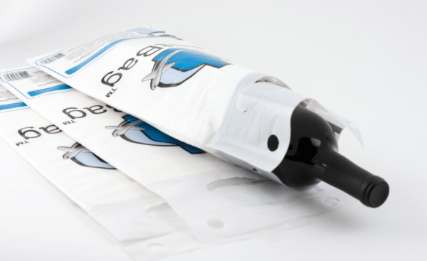 This handy, biodegradable carrier is 18 inches tall, weighs only a third of an ounce and can easily hold a 750 mL bottle of wine within its protective padding. With a re-sealable closure, you also can use it over and over (as long as a bottle doesn’t break in it).