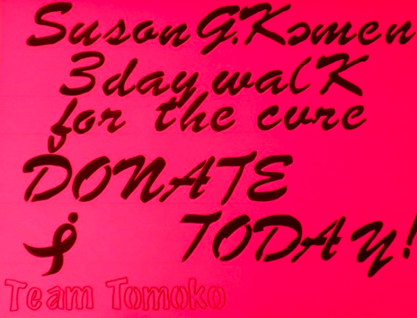 How: Individuals can support Tomoko by getting their heads shaved for $50, or simply by making a $50 donation. All of the proceeds from the head shaving and specialty cocktails will directly support Tomoko and her team. Furthermore, proceeds from the Pink Ribbon cocktail for the rest of the summer will continue to support local teams participating in the Susan G. Komen 3-Day.