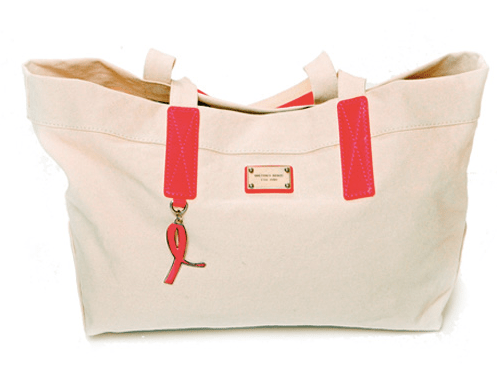 This tote bag from Michael Kors supports a good cause in a fashionable way. It is made from ecru canva,s and sports a Breast Cancer Research Foundation ribbon charm. Fifty percent of the proceeds from these totes is donated to the BCRF.