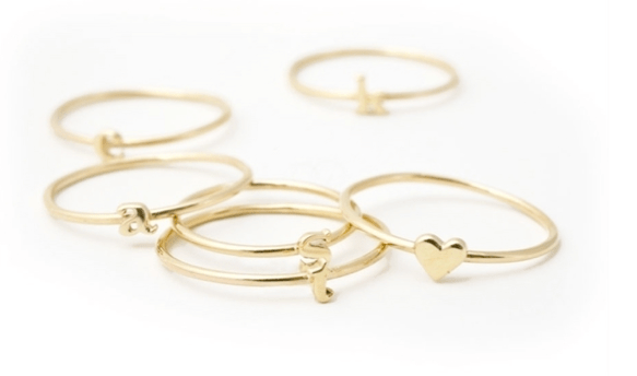 Sleek and simple, these alphabet rings at Catbird are a gift for your loved one or best friend to cherish. Spell out your feelings and personalize your gift with custom initial and heart details. These rings come in both silver and gold, and look stylish either on their own or stacked against one another.
