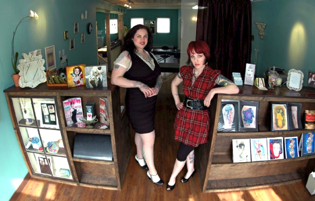 The story of Sunken Ship is a fairytale made in pin-up, tattoo heaven. Husband-and-wife owners, Matt and Heidi Sawdon (the latter more commonly known as Hot Rod Heidi) are high school sweethearts that have been married for 18 years. Formerly a construction worker and a barista, respectively, Matt and Heidi settled on the business of tattoos and vintage clothing years ago.