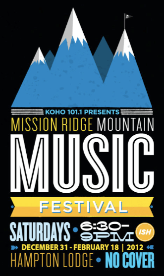 Eight Saturdays of live music at Mission Ridge’s Hampton Lodge kicks off on New Year’s Eve, with the smooth reggae sounds of Seattle’s own Adrian Xavier. The festival is free of charge and will feature other artists, such as folk musician Michael Carlos (Jan. 14) and guitar rock group Cody Beebe & The Crooks (Feb. 4).