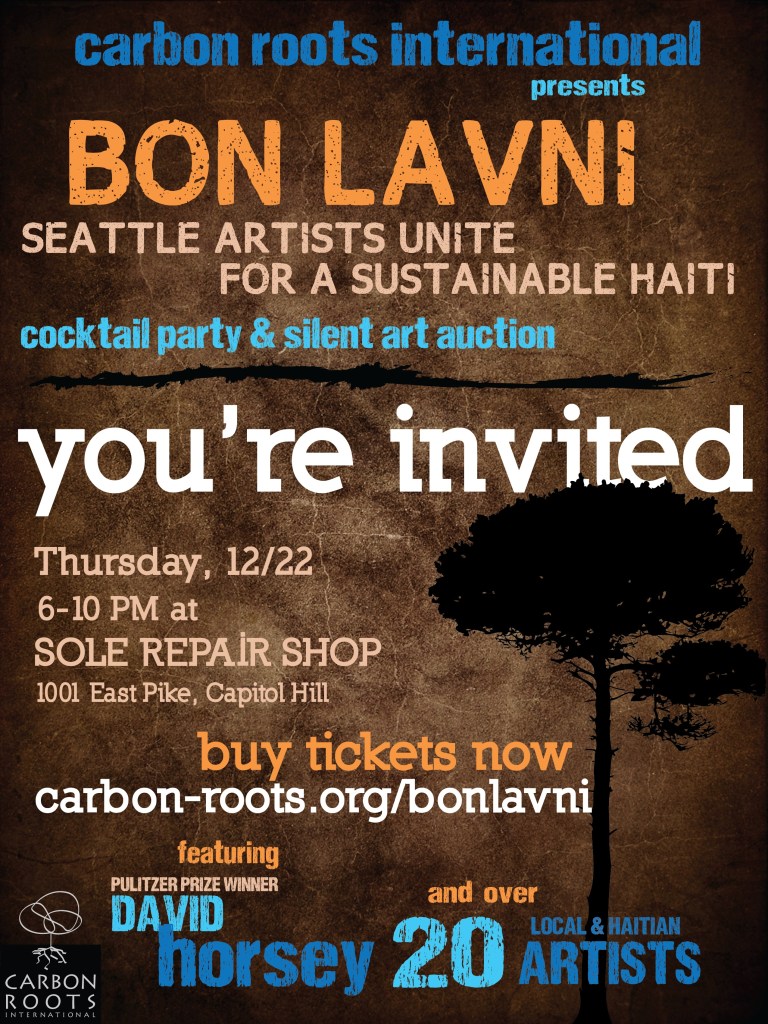 Carbon Roots International, a non-profit created to help small-scale Haitian farmers, will host the first annual Bon Lavni cocktail party and silent art auction. The show will feature original artwork from Horsey, as well as more than 20 other local and Haitian artists.