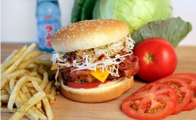 Japanese and American cultures mesh to bring you the deep fried burger.