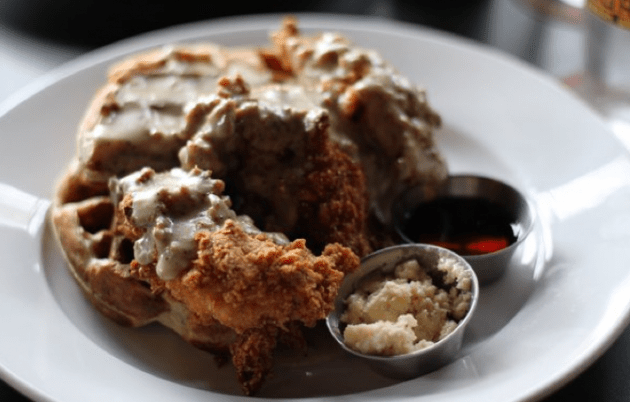 Breakfast is served all day – instant win. Choose from a huge selection of draft/canned beers and cocktails while you chat with friends and chow on chicken and waffles.