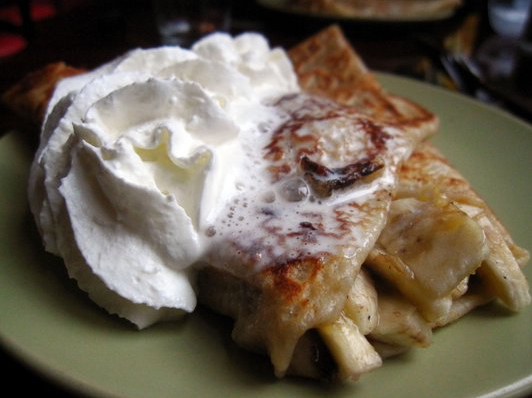 I always have Nutella with bananas and whipped cream ($5.25) for a sweet crepe, and if you’ve never tried one, you must now. Be careful – Nutella is addictive. I once went through a jar in about a week and swore it off. That didn’t last long.
