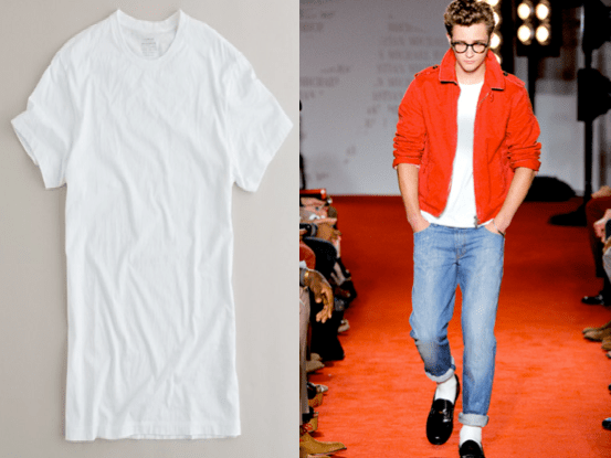 V-neck tees are still on trend, but the round-neck tee is making its way back. Embrace the “greaser” look with the round-neck plain white tee. This tee from J. Crew is a comfortable cotton jersey specifically dyed for a vintage look.