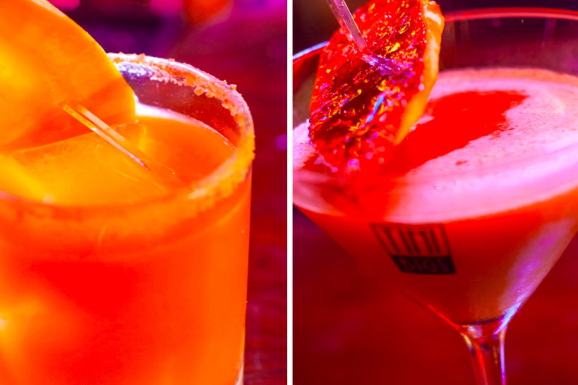 The Good & Evil juicer cocktail is a health inspired cocktail which features fresh carrot juice, Pisco- a grape brandy, lemon juice, honey water and whipped egg whites. To top it off, this cocktail is garnished with the Tini Bigs logo perfectly crafted out of finely sprayed Angostura bitters.