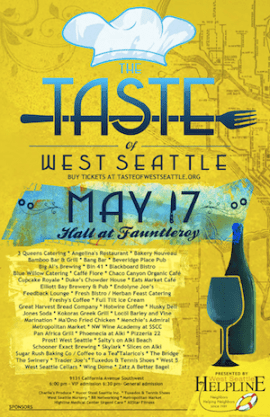 Every year, hundreds of food lovers head west for a mega spring food event, the Taste of West Seattle. At this grub fest, participants sample food and beverages from over 50 of West Seattle’s best restaurants while helping to raise money and awareness for the West Seattle Helpline, a nonprofit organization helping Seattle families with one-time emergencies.