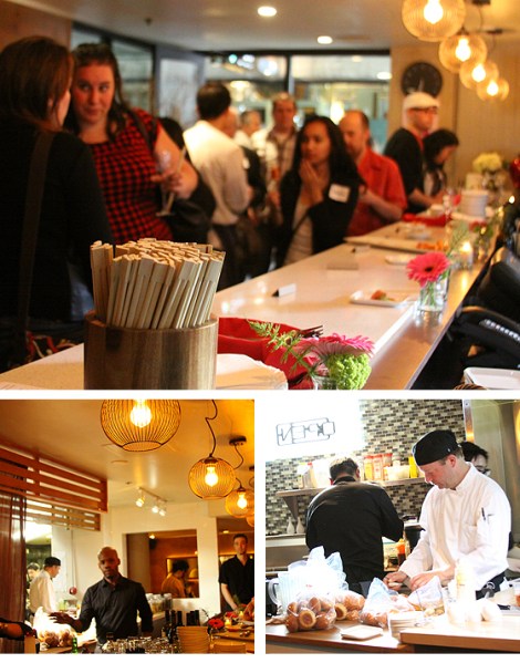 The space may be small, but the design is a quintessentially-Korean example of how to get a big feel out of a tight fit. At the recent grand opening, friends were ensconced into cleverly-carved niches I continued to discover throughout the night. At Cha:n, the kitchen and bar form the nucleus of the restaurant, giving diners and imbibers an excellent view of the action.