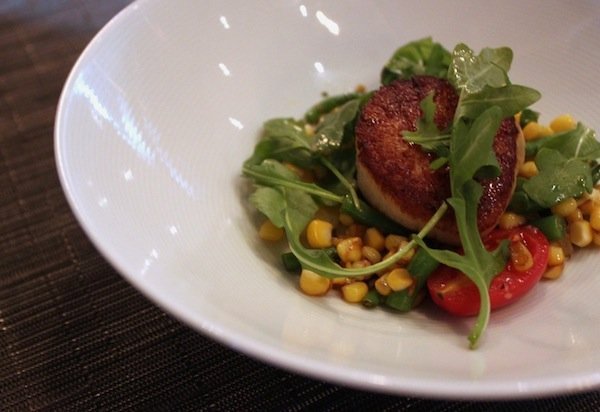 Hamachi Crudo is fresh and light. Pork Belly Slider with braised cabbage, caraway, and whole grain mustard aioli is a delicious appetizer. Seared Hudson Valley Foie Gras with pistachio and cacao nibs. Lamb Loin is roasted in a clay oven with eggplant, lentils, Tokyo turnip, and Cipollini onions.
