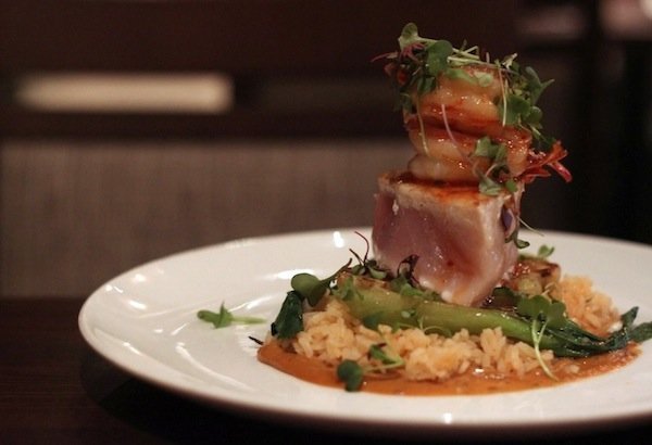 Flash Seared Albacore Tuna is influenced by Asian flavors with a coconut curry sauce, jumbo prawns, jasmine rice and baby bok choy. The Salt & Pepper Alaskan Halibut has a nice sear, giving a nice crunch, while keeping in the inside tender and juicy with a pistachio-basil pesto. The steaks are char-grilled to perfection — whether you go for the tender Filet Oscar with a bearnaise sauce, a Smoked Rib Eye, or the New York Strip. The unique touches, including a drizzle of 30 year balsamic or a gratin of bacon potatoes sets it apart from traditional steakhouses.