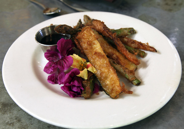 If you don’t know how I feel about beer-battered things, you probably just figured it out by reading the first part of this sentence. You could beer batter a shoe and I’d find a way to eat it. But these vegetables are not shoes. And this is not just any ol’ beer-battered, mouth-watering, day-making dish. It’s better. Asparagus, carrots and zucchini straight from the farmer’s market are battered and fried to crispy perfection. Ginger gives the crunchy exterior a nice, mild kick, and the tamari yuzu sauce adds a tangy spark I would have never thought to pair with beer-battered anything. But it works. Oh yes it does. I lurve this dish.