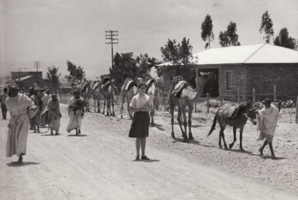It was very overwhelming at first. I had spent a summer in Germany, but I had never been to a place that was so poverty-stricken. We landed in Addis Ababa. I remember flying over and seeing all the slums, people living in these tiny huts that sprawled all over the place. When we stepped off the plane, I smelled burning eucalyptus, which is a wonderful smell. And the scenery was absolutely gorgeous. The afternoon we arrived, we were invited to Haile Selassie’s palace for a champagne reception. We each got to meet the emperor and shake his hand. Now, the elevation of Addis Ababa is 8,000 feet. Here we were tired from the journey, with a little headiness from the champagne and the elevation. Like I said, the whole day was very overwhelming.