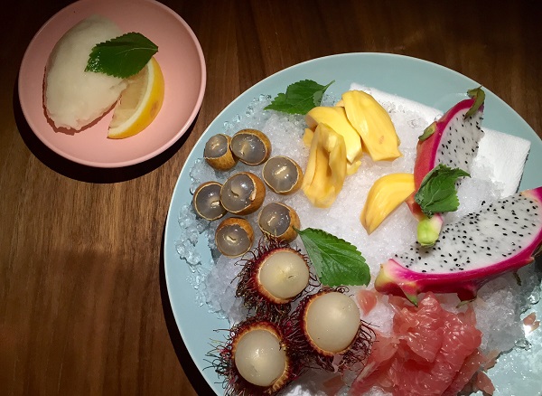 Exotic Fruit Selection: fresh cut jackfruit, pomelo, rambutan, dragonfruit with a divine jasmine sorbet. Not usually a fan of tea-infused desserts, but I could have a pint of this refreshing and light sorbet. It’s unique to see fruit for dessert and it’s absolutely lovely.