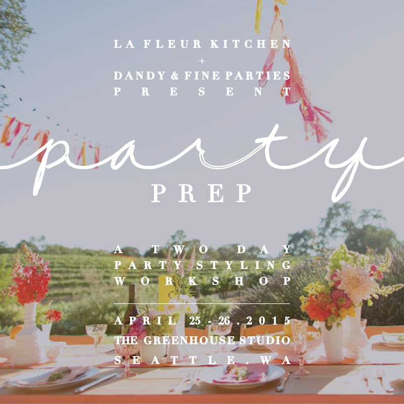 Party Prep Workshop will be taking place Saturday, April 25th through Sunday, April 26th at The Greenhouse Studio in lower Queen Anne. The class will give creative people the tools to strengthen their design and styling skills and learn basic fundamentals from industry professionals Brynn Renne of Dandy & Fine Parties and Cherie Marquez from La Fleur Kitchen.