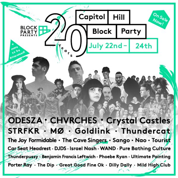 It’s the 20th anniversary of Capitol Hill Block Party (CHBP), which is scheduled for July 22-24 this summer. Today, the first wave of confirmed performers were announced, which include Scottish indie-pop band CHVRCHES, experimental electro-pop group Crystal Castles, and local electronic duo ODESZA. You know it’s summer when the streets in the heart of Capitol Hill are blocked off and flooded by Seattleites. Good vibes, good music, and good weather are what makes CHBP an event to catch every year.