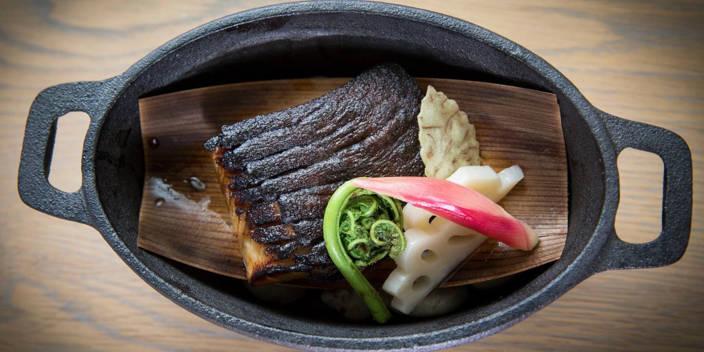 There are three options for dining: a tasting menu (six courses for $75); the Naka kaiseki (10 courses for $120); and the chef kaiseki (15 courses for $170). The 15-course menu is customized and requires a week’s advance notice. Unlike omakase, kaiseki is a coursed meal determined by the chef’s whim. If you want to check out the restaurant, but aren’t ready to commit to a coursed meal, the bar food menu showcases freshly shucked oysters, a chicken rice bowl, a wagyu katsu, and more.