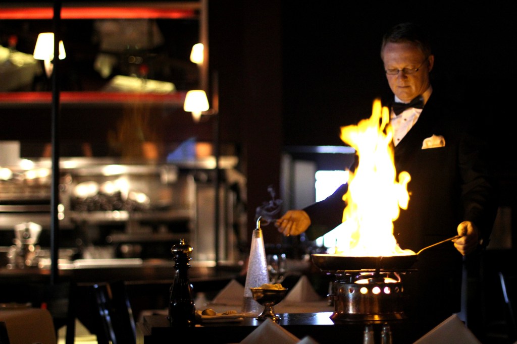 Tableside flaming sword lamb shish kebab