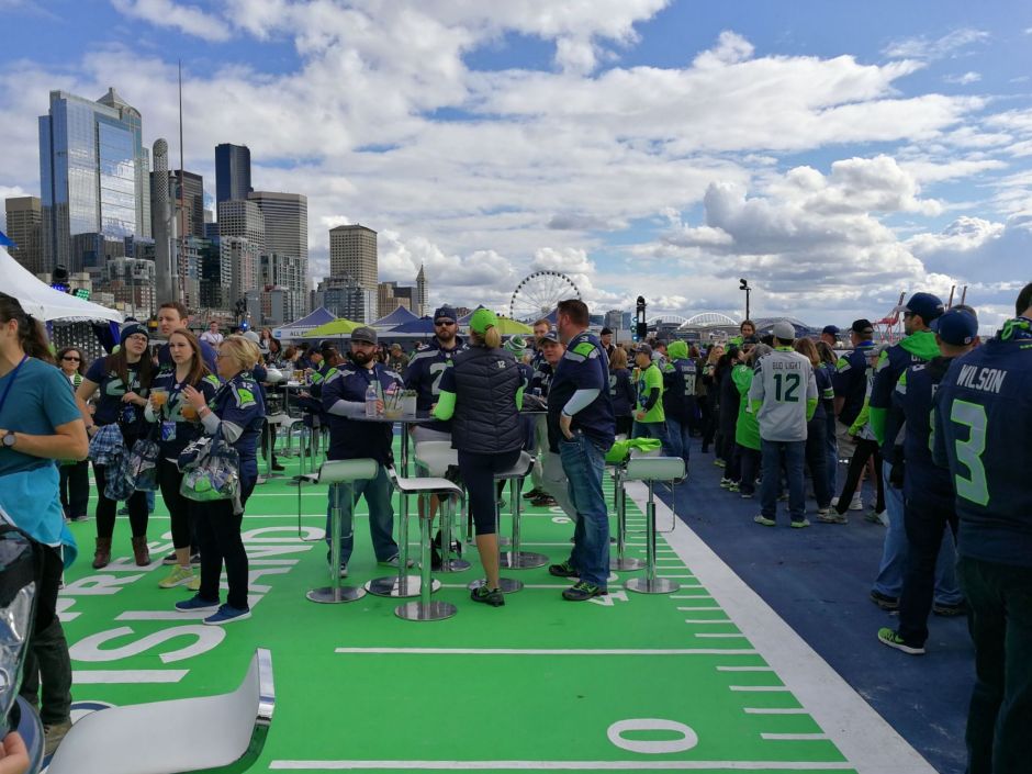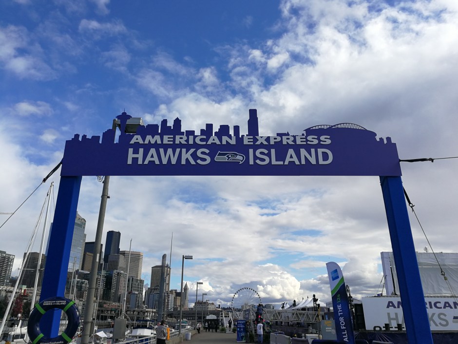 American Express once again held its annual “Hawks Island” in Seattle on October 1st, hosting several hundred American Express Card Members and American Express-accepting merchants on a 200-foot+ barge (the length of more than two basketball courts) at Pier 66. For the second consecutive year we had the chance to attend this fun pre-game experience. Hawks Island is definitely a must go if you are a casual or diehard Seahawks fan like myself.
