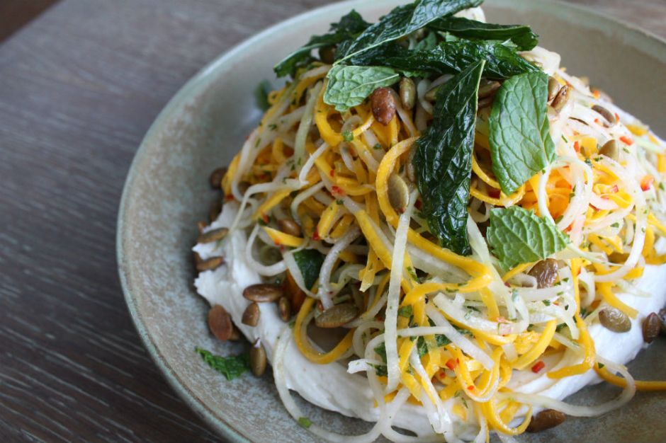 The Shaved Kohlrabi was incredibly fresh, with just the right amount of spice. A few bites were a bit too heavy on the cilantro, but the bed of cheese which was nutty in flavor was the perfect offset to the strong flavoring of the cilantro and chimichurri on the kohlrabi. The Wagyu Beef Carpaccio was sliced paper-thin and had a melt-in-your-mouth tenderness to it. The dried apples complemented the salty beef wonderfully.