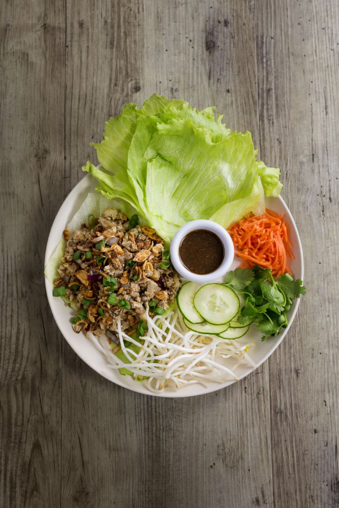 Neither my dining partner nor I stick to a vegan diet, but every dish we tried had us reaching for more. First up were the Southeast Asian Lettuce Wraps, which consisted of organic tofu, mushrooms, water chestnuts, scallions, cashews, and crispy shallots, accompanied with shredded carrots, cucumbers, bean sprouts, cilantro, lettuce leaves + dipping sauce.