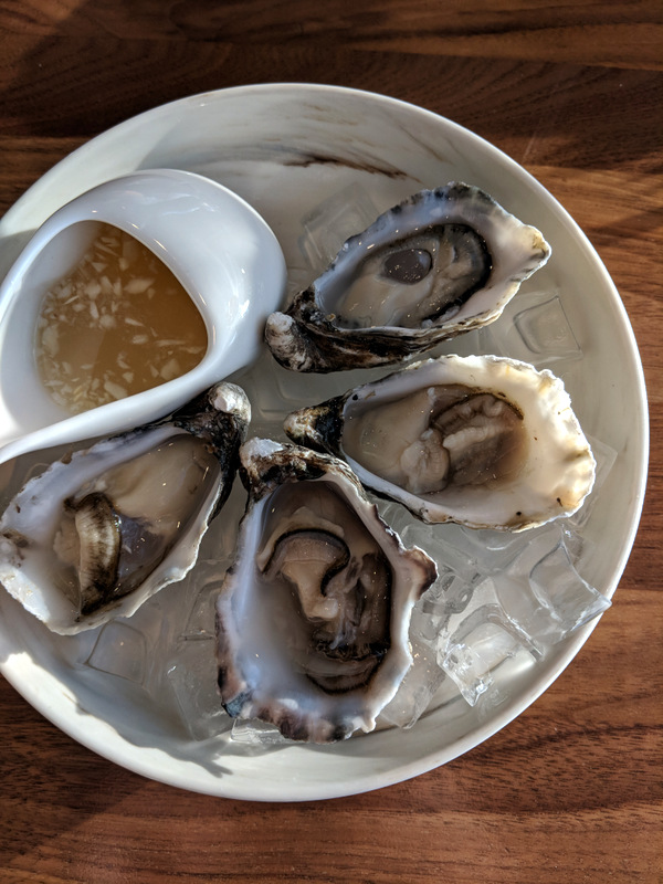 Additionally, we tried the Local Oysters and Pork Dumplings, but unfortunately these both missed the mark for us. The dumplings were supposed to be steamed, but they were hard on the outside and had cooled off inside, while the local oysters had started to warm to room temperature and lacked flavor.