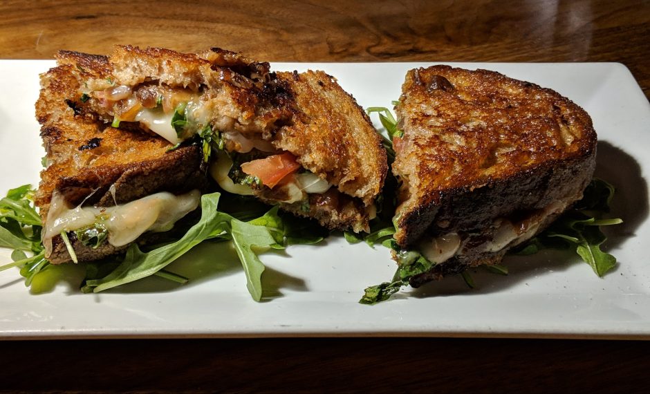 Of all the food we tried that night, two dishes rose to the top: the Crispy Cheese Curds and the PJ&B Grilled Cheese. The Crispy Cheese Curds included, beer battered cheese curds, crispy bacon bits, honey sriracha, almond cilantro gremolata, and charred lemon. I haven’t had cheese curds this good since the Minnesota State Fair–and for all my Minnesotans out there, you know that is saying something!