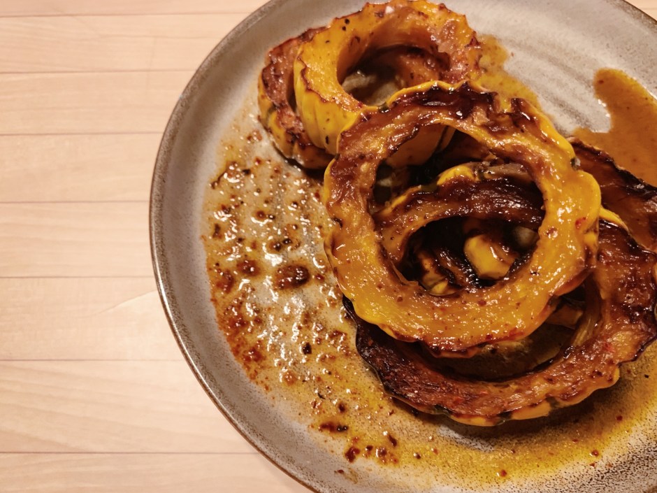 The veggies all sounded delicious, from Brussel sprouts with kung pow sauce to roasted broccoli with lemon tahini and sumac. We ordered the Delicata Squash with aleppo pepper and it was maybe the favorite dish of the night. The squash was perfectly roasted and the sauce was addictive, with a hint of spice. The Charred Cauliflower with smoked pimento, garlic, and herbs was also roasted to perfection and came in a close second.