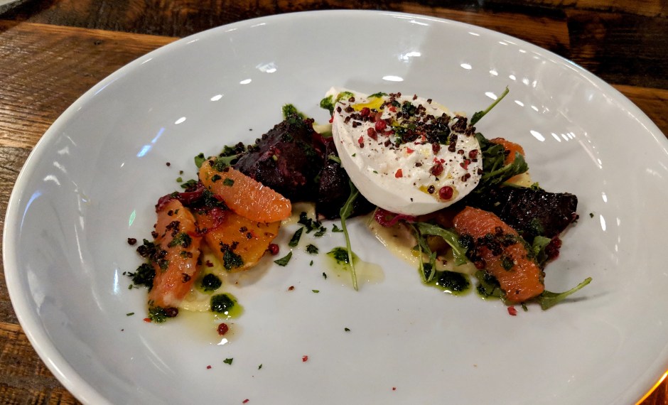 From the garden section of the menu, we started with the Warm Roasted Beets and Wild Arugula with burrata, crispy quinoa, and a golden beet emulsion. This dish was a surprising mix of sweet and tart, creamy and crunchy, and warm and cold. It was the perfect dish for the season.