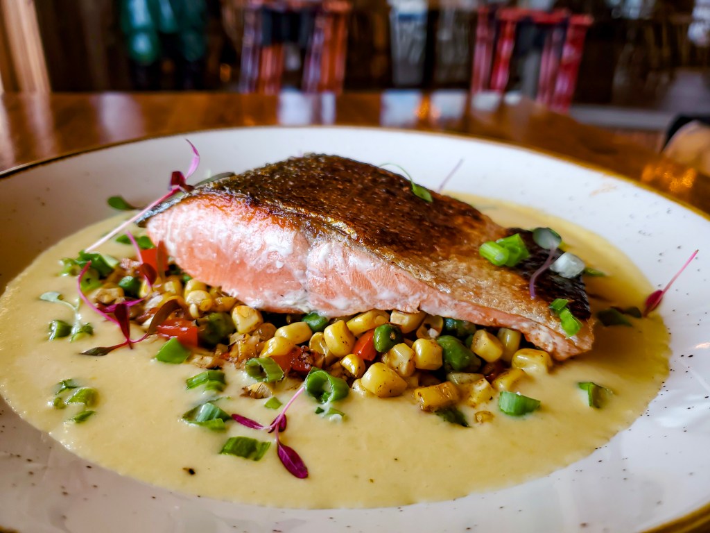 Guests can enjoy the rich flavor of Bristol Bay sockeye salmon in three different dishes at Fisherman’s Restaurant & Bar at Miners Landing on Seattle’s waterfront. The first featured dish is the Grilled Sockeye with a classically grilled sockeye lightly brushed with butter and lemon, wild rice pilaf, and seasonal chef vegetables. The second dish is the Pan-Seared Bristol Bay Sockeye with crispy skin seared sockeye, fresh corn beurre blanc, young garbanzo and corn succotash. The last featured dish is the Wild Red Salmon Poke with marinated sockeye, nori strips, garlic, soy sauce, ginger, togarashi, edamame, tender green garbanzo beans, and sushi rice.