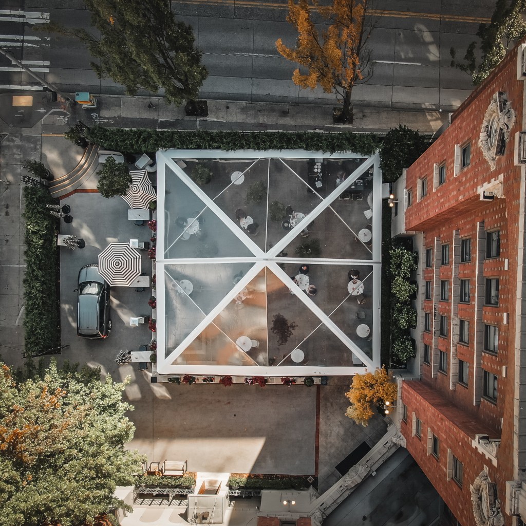 (*Update: The hotel and restaurant will close as of 11/30 and reopen in the spring.) There’s a new outdoor dining venue at the charming, 111-year-old Hotel Sorrento — Stella, which features a coastal Italian menu and dazzling cocktail program. Under a large, European-feeling tent called “The Star Garden,” cozy up next to a heater and enjoy seasonal fondue service and tableside DIY s’mores.