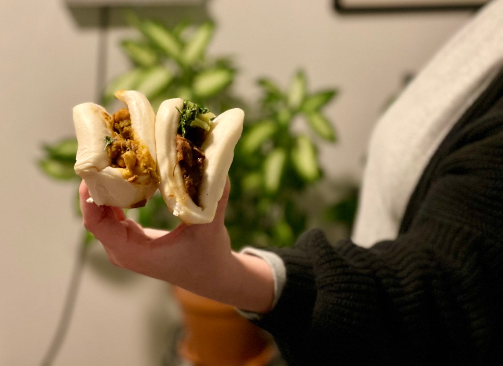 Figurehead has great outdoor, heated seating options, or you can have Chef Komagata package up your ramen to-go. We opted to get our meal to-go—everything travelled back to Capitol Hill fine and the ramen was still hot. From the Beer Snacks portion of the menu, we had the Thai Chicken Lettuce Wraps, and one each of the Beef Brisket Steamed Buns and the Chickpea and Kale Curry Steamed Buns. The lettuce wraps were a cold, fresh version of the this dish and I loved it. The flavors were crisp so refreshing when paired with the deep flavors of the ramen.