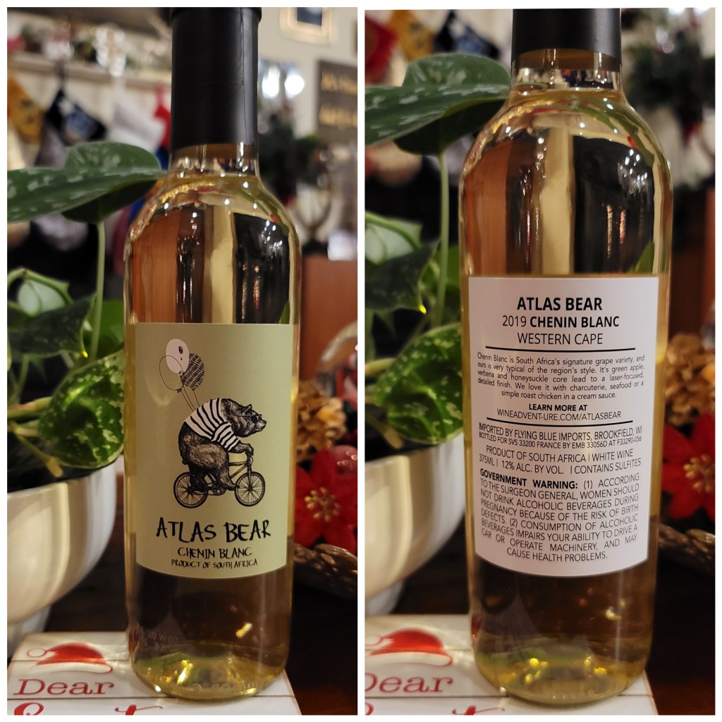Day 10: Atlas Bear 2019 Chenin Blanc —I was pleasantly surprised! This was a bearable white. It was refreshing and not too sweet; I drank the whole thing so that should tell you something.