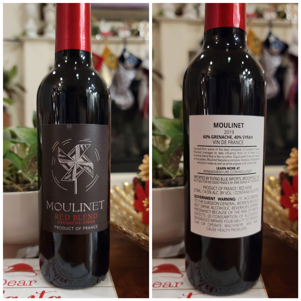 Day 16: Moulinet 2019 Red Blend—Easy to drink, nothing to write home about.