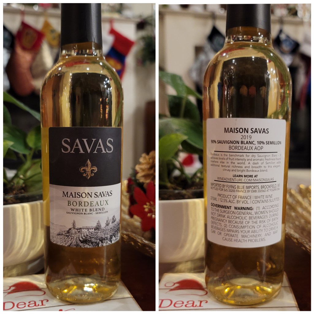 Day 20: Maison Savas 2019 Bordeaux White Blend—I don’t know about you, but I didn’t know white Bordeaux’s existed! I guess you learn something new every day. Personally, I’ll stick to the red ones.