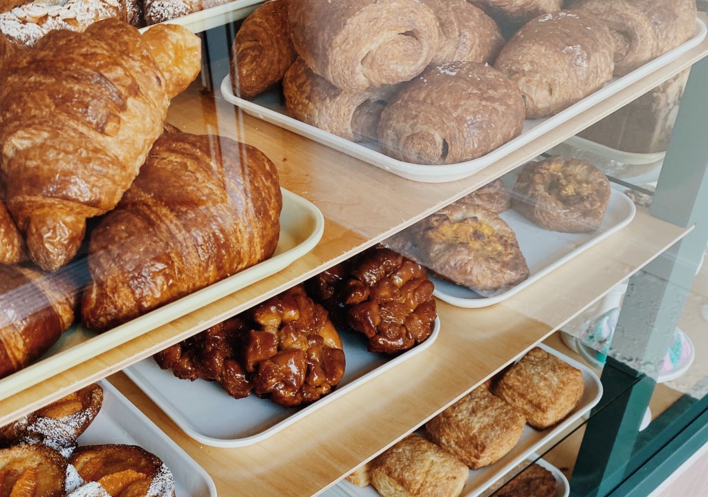 After Saturday’s opening day, Stratton-Clarke is kicking up production on pastries to provide a larger quantity to meet the unexpected demand. Guests can expect many gluten-free and vegan options, as well as savory pastries, croissants, muffins, pies, quiches, brownies, cookies, kouign amann, and a rotating menu of seasonally inspired pastries and breakfast sandwiches. Drinks are also available from their menu of inventive Stumptown espresso drinks and robust tea selection.