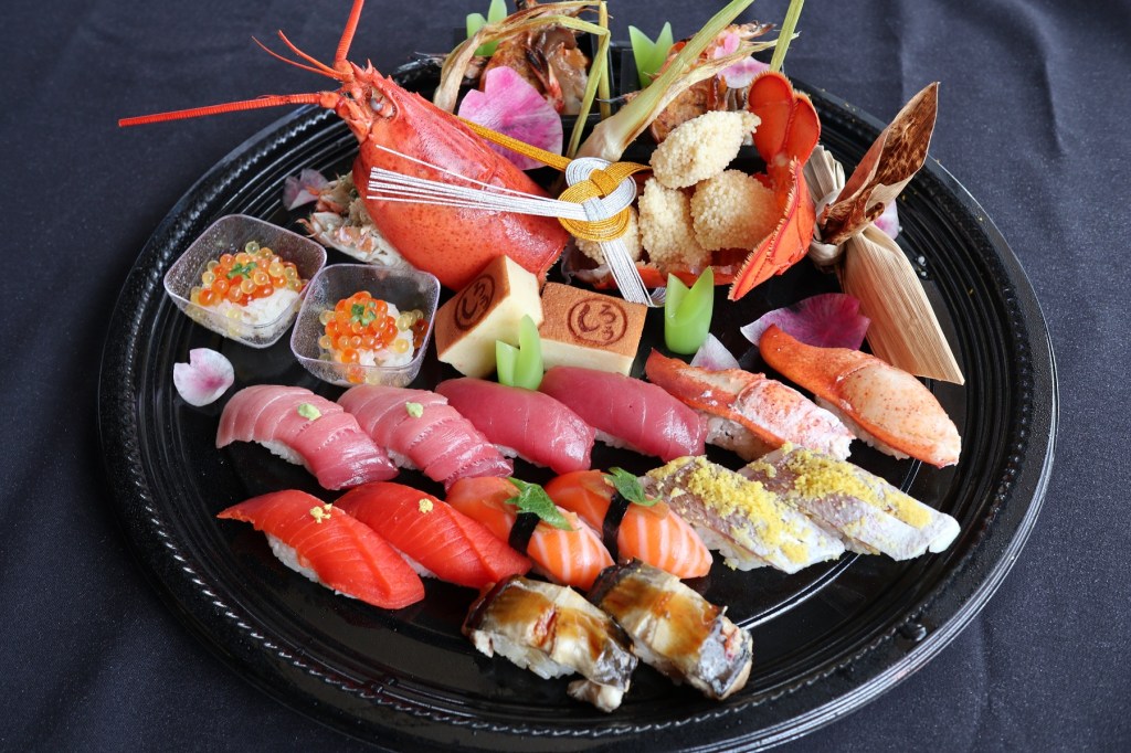 On the Valentines Platter: Tuna, Medium Fatty Tuna, Fatty Tuna, Ola King Salmon, Sockeye Salmon, Kasugodai (young sea bream), Anago (sea eel), Kuruma-Ebi (Japanese Tiger Prawn), Hokkaido Sea Urchin, bi-color Ikura, lobster, tongue sole, oyster, egg omelet, and a dessert befitting of Valentine’s weekend.