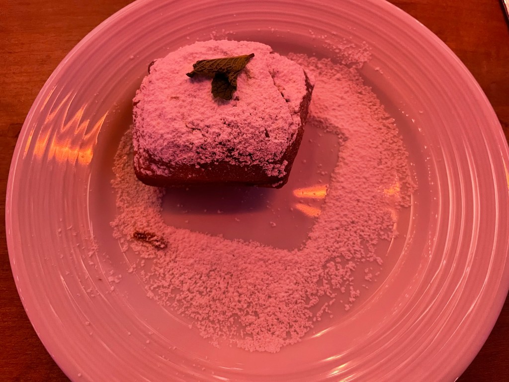 Chef Matt’s cooking never disappoints, and this four-course dinner was no exception. The first course was a salad with winter greens, fried green tomatoes, crawfish tails and pancetta. The second course was a seafood gumbo with dungeness crab, oysters and shrimp. Our third course was a melt-in-your-mouth smothered pork, with field peas, braised greens & jus. And for our fourth course, Chef Matt finished the meal on a decadent note by serving up chocolate filled beignets.