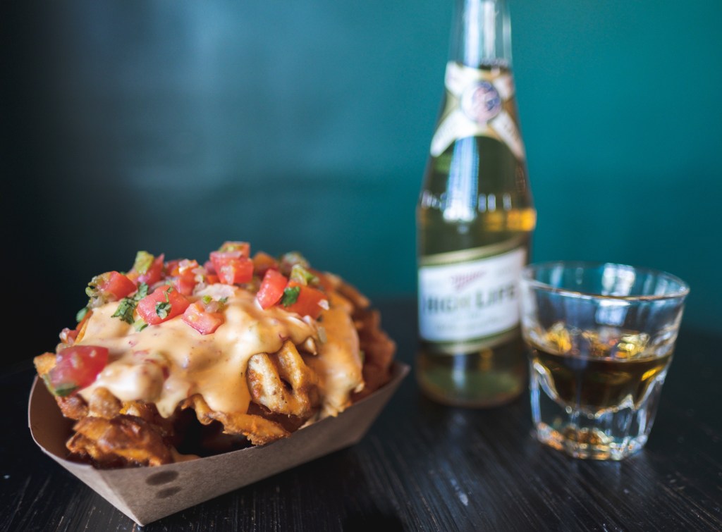 Tio Baby’s offers a plethora of bar snacks, including candied peanuts, escabeche pickles, chips and queso, and marinated Castelvetrano olives. For those wanting a larger meal, the cheesy fries with adobado pork shoulder, “Ti-attle” dog with sriracha-hondashi cream cheese and caramelized onions, and the sandwich filled with slow cooked spare rib are all delectable.