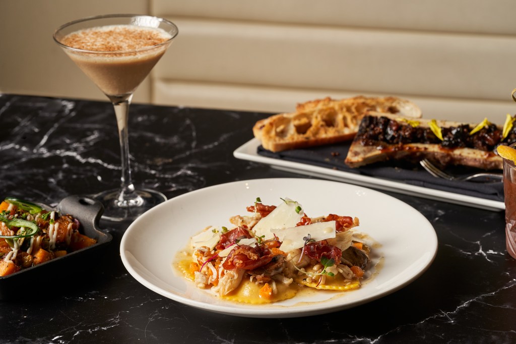 The pumpkin menu at STK Steakhouse is a mix of classic flavors with inventive twists. One standout is the Duck Burger, featuring a juicy, tender duck patty paired with sweet caramelized onions, a tangy plum chutney, crispy sweet potato fries, and a slightly-too-sweet pumpkin ketchup. The duck patty was well paired with caramelized onions, which added just the right amount of sweetness to complement the mild gaminess of the meat. Another highlight was the Pumpkin Ravioli with Dungeness Crab. These delicate ravioli were a sweet and creamy taste of fall, with the champagne confit mushrooms adding an earthy, umami depth to the dish.