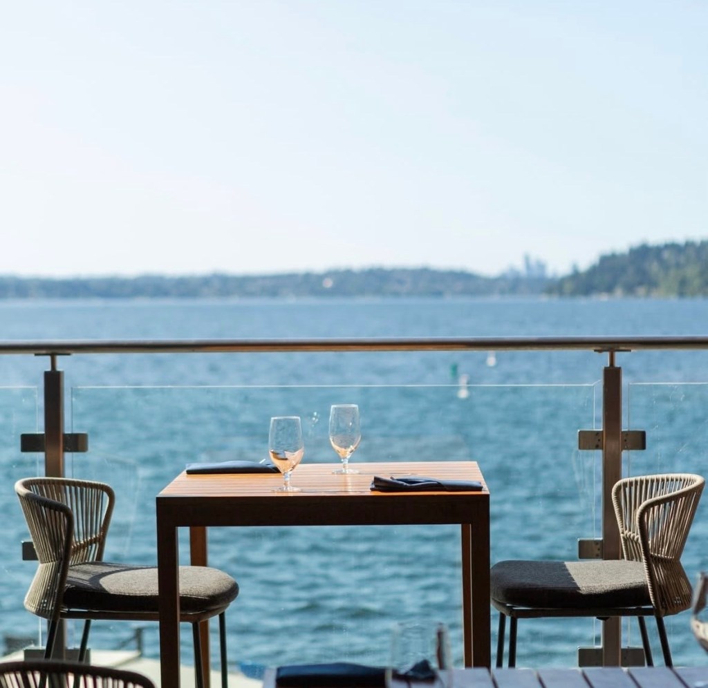 Stepping into Water’s Table, you’re welcomed by a laid‑back and upscale coastal atmosphere. You can choose from indoor seating or their heated, covered patio offering beautiful views of Lake Washington. Whether you’re dining lakeside or unwinding by the bar, the ambiance feels like an escape from the city’s hustle and is ideal for those warm summer evenings.