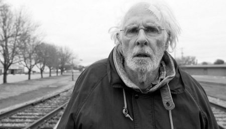Nebraska starts with the old school painted mountains of the Paramount logo, a veiled reminder of the golden days of the USA, and jumps into an austere black-and-white landscape of Montana as Bruce Dern‘s Woody Grant stumbles down the snowy strip of government manicured grass between some train tracks and a largely vacant highway. Convinced he has won a million dollar prize, Woody’s intent on claiming his winnings in Nebraska even if that means walking the entire eight hundred mile trip on foot. A reminder of how off the tracks his life has veered, Woody sees his not-too-good-to-be-true grand prize as a means to a life he never had – a golden ticket to meaningfulness and utility long lost.